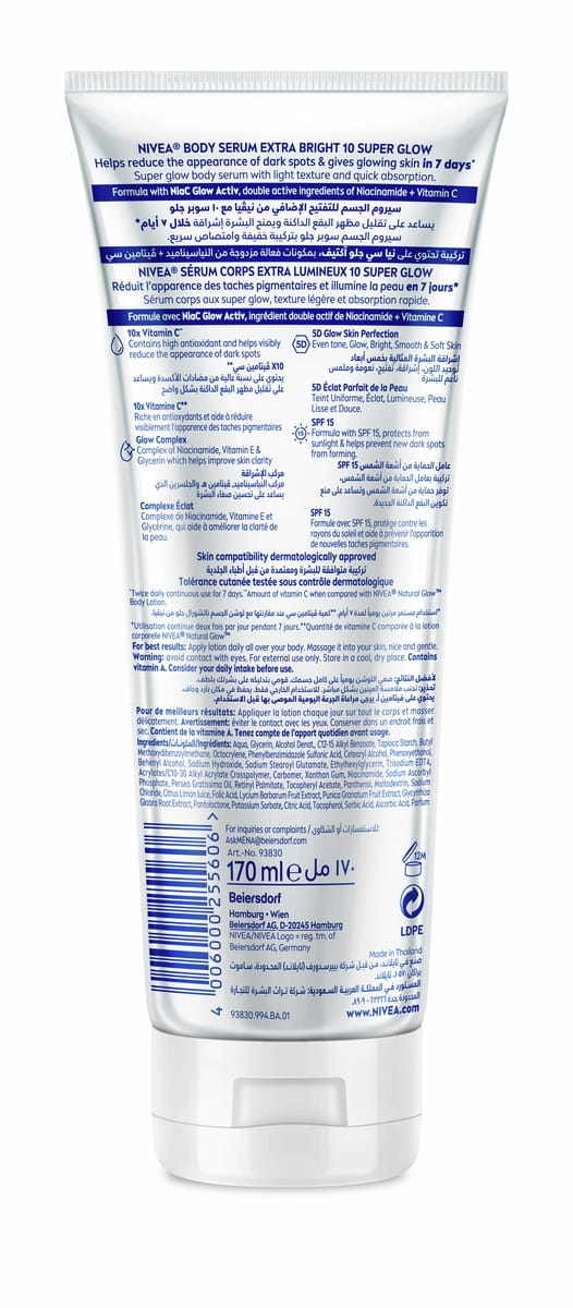 بشرة مذهلة. تشبهك. فعالية تصل إلى عمق 10 طبقات مع سيروم للجسم 10 سوبر جلو بيرفكشن من نيڤيا