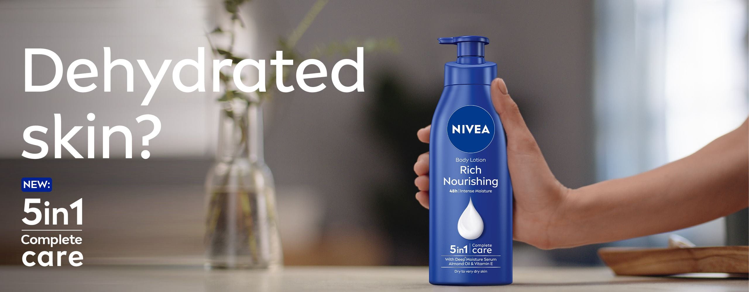 Daily life leaves its traces on us and our skin: Be it small things, like fitness-band marks on the legs, hair waxing irritation, bra marks left on the skin after a long day, along with daily external influences: coldness we need to withstand, sun exposure, or hand dryness due to overwashing. It’s time to give your skin all it deserves now with NIVEA Body Lotion for 48H deep moisture, dry-out protection, smooth skin feel, and non-greasy, healthy-looking skin.